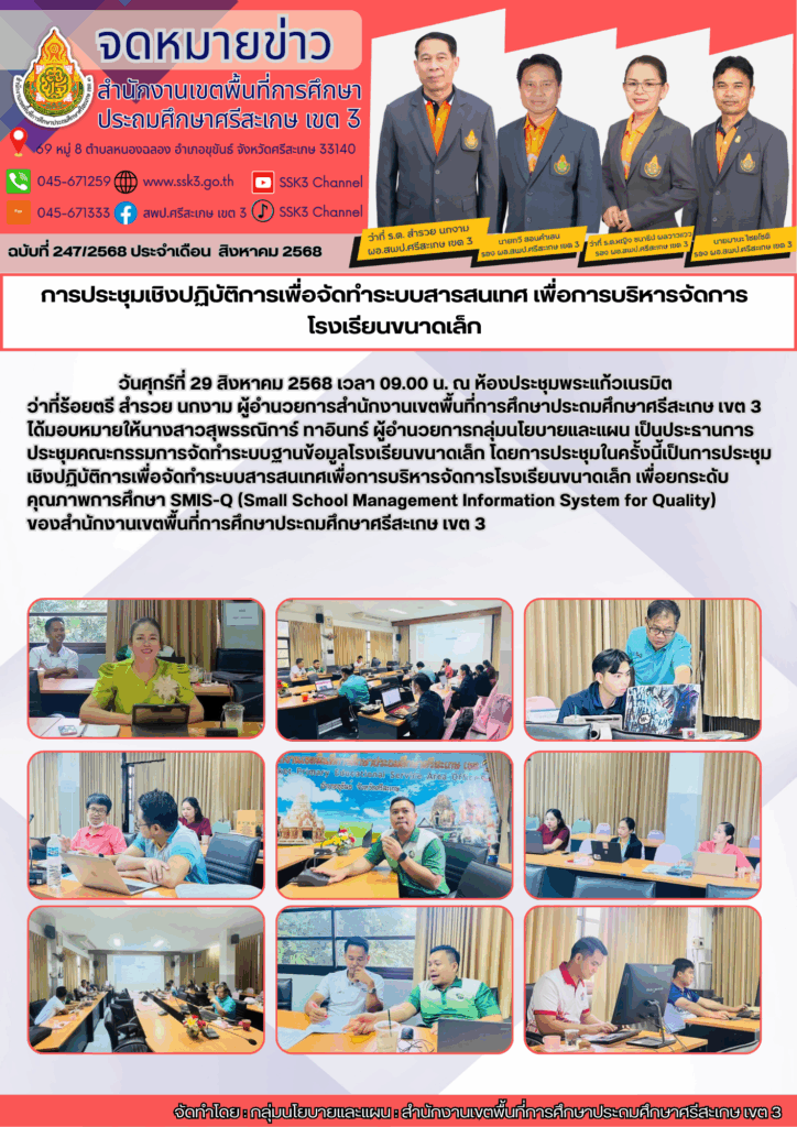การประชุมปฏิบัติการเพื่อจัดทำระบบสารสนเทศ เพื่อการบริหารจัดการโรงเรียนขนาดเล็ก ตุลาคม 6, 2025 Last updated : ตุลาคม 6, 2025 thammanoon thongnongbua