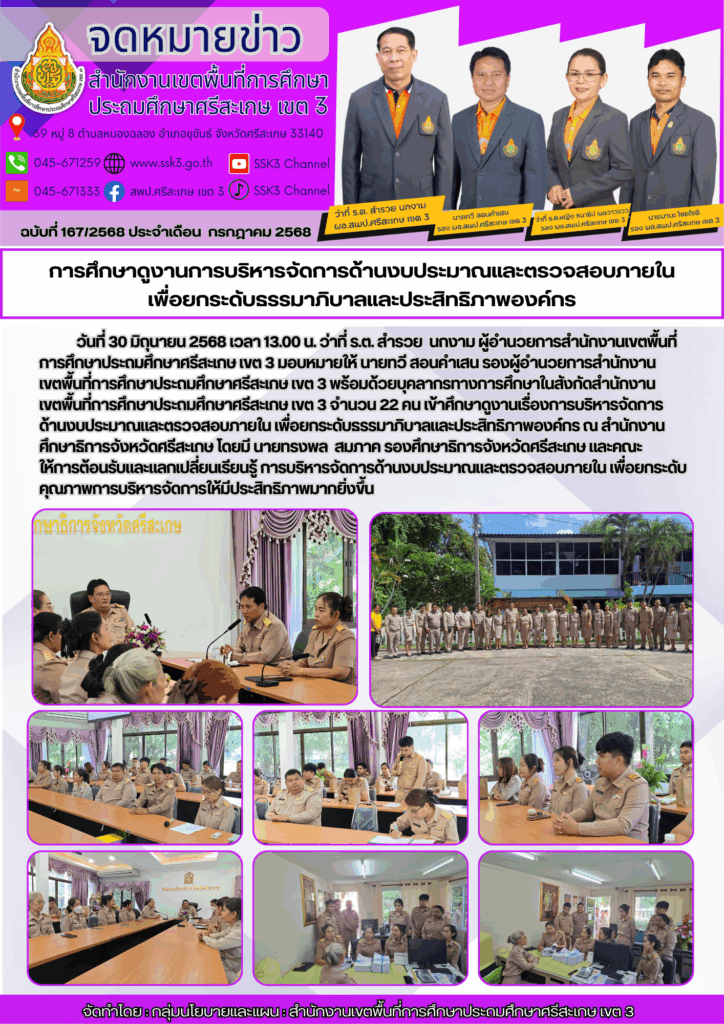 การศึกษาดูงานการบริหารจัดการด้านงบประมาณและตรวจสอบภายในเพื่อยกระดับธรรมาภิบาลและประสิทธิภาพองค์กร