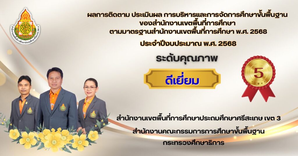 ผลการติดตาม ประเมินผล การบริหารและการจัดการศึกษาขั้นพื้นฐานของสำนักงานเขตพื้นที่การศึกษาตามมาตรฐานสำนักงานเขตพื้นที่การศึกษา พ.ศ. 2568 ประจำปีงบประมาณ พ.ศ. 2568 ตุลาคม 29, 2025 Last updated : ตุลาคม 29, 2025 sirivimon.009
